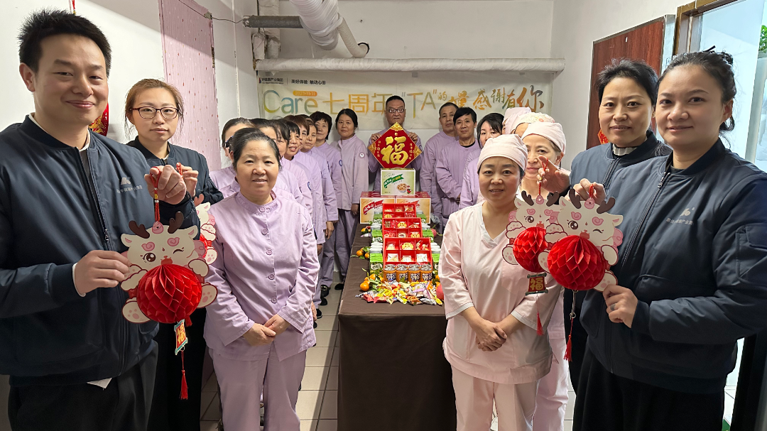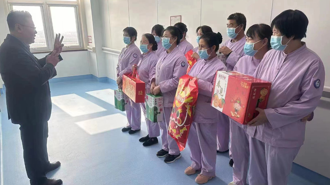 2月9日除夕夜当天,在新春佳节的浓厚氛围中,惠佳丰健康产业集团董事长张磊、执行副总裁刘巍、运营副总裁王涛及区域经理一行,向坚守岗位、辛勤付出的一线服务人员们送去了关怀和节日的问候,让一线服务人员们感受到了集团大家庭的关怀与温暖。